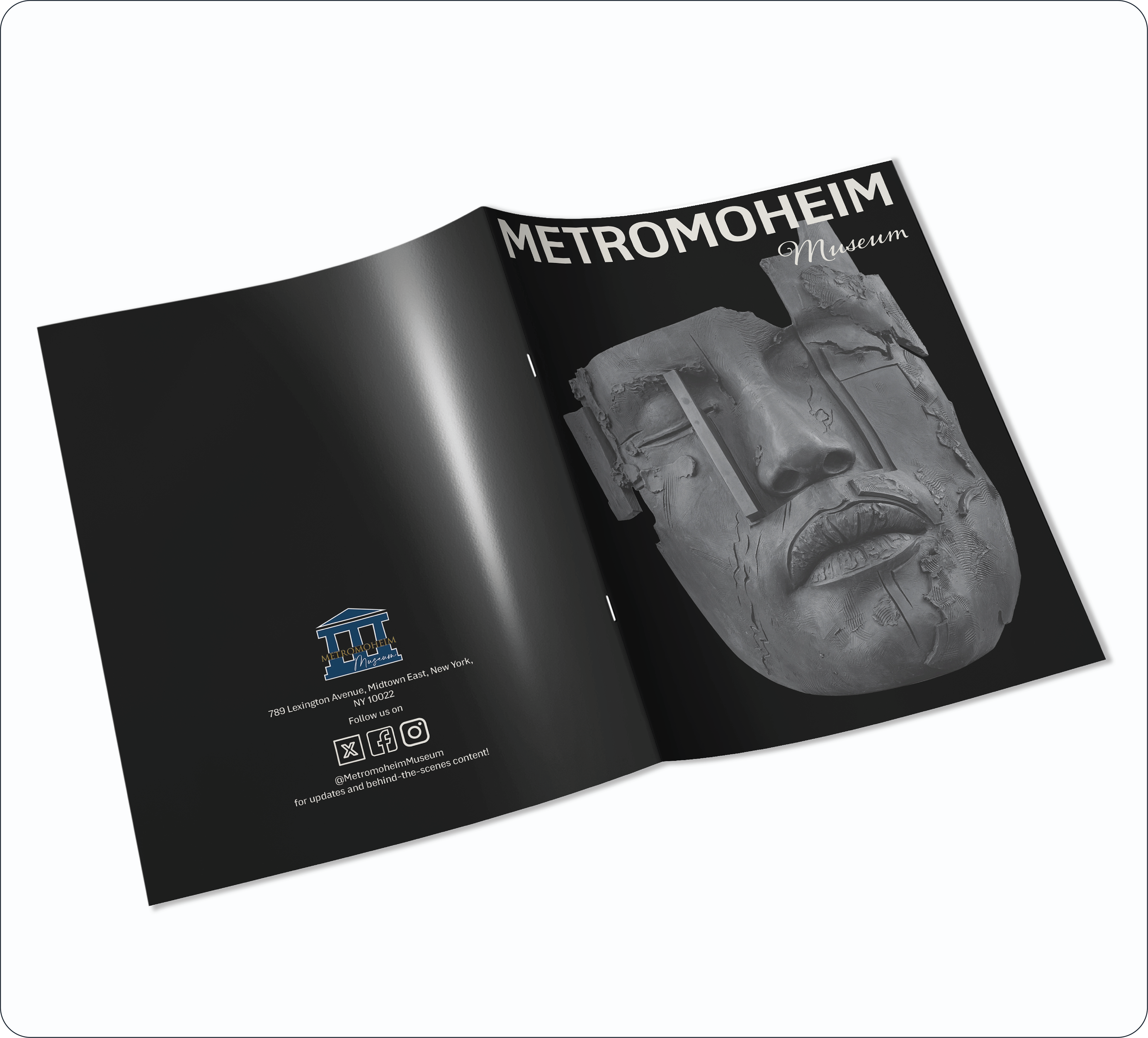 This catalog was created as a university project to explore publication design for a museum setting. The concept focuses on the Metromohiem Museum and features the work of a selected artist from a seasonal exhibit. The goal was to design a visually engaging and well-structured catalog that presents the artist’s collection clearly while maintaining a professional and balanced layout.